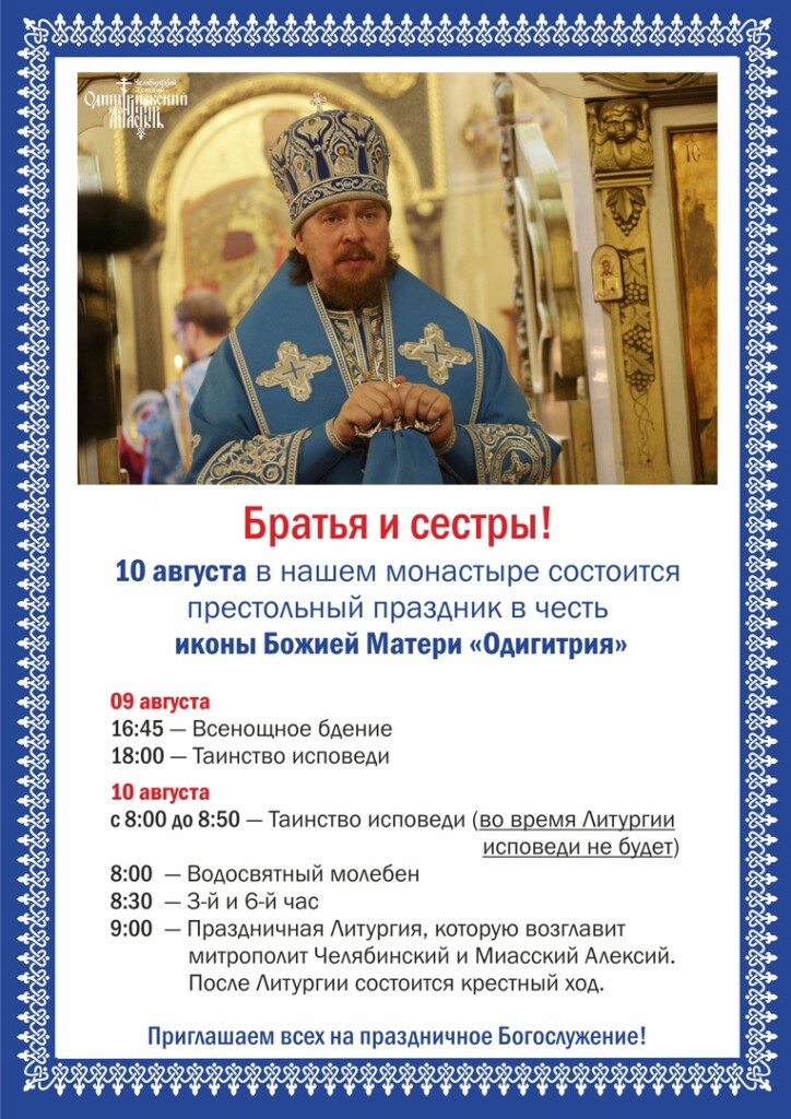 Этот удивительный, тихий, сокровенный, таинственный праздник называют «Богородичной Пасхой». И для нашей обители до революции это был особенный праздник. Вот что записано в летописи нашей обители составленной Раисой Будринной, послушницей Челябинского Одигитриевского женского монастыря :