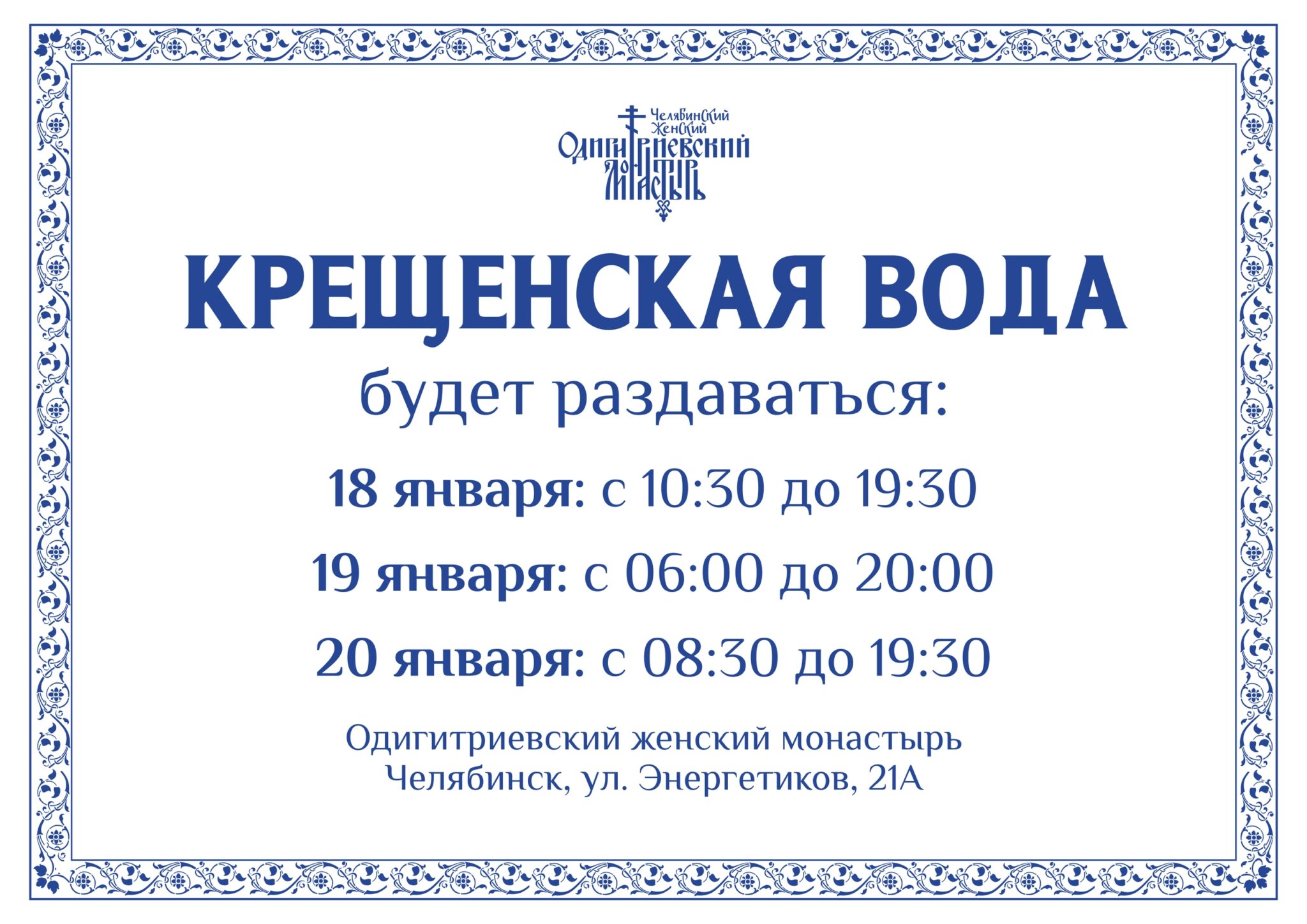 Утреннее богослужение 6 января с 07:00 до 11:00: