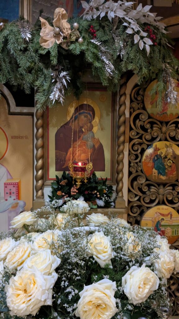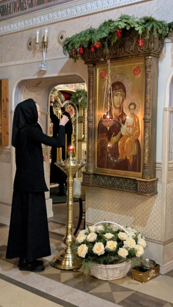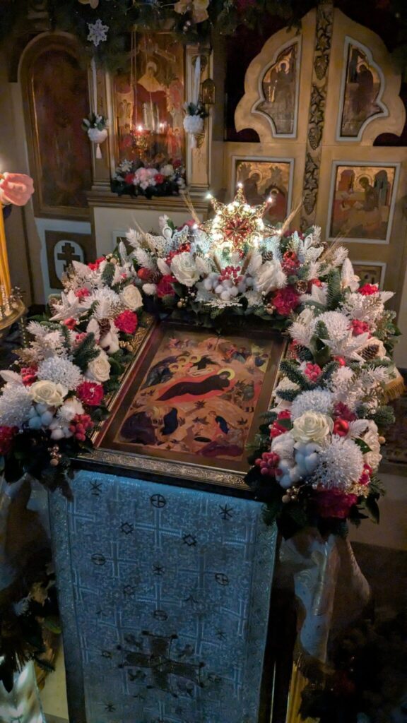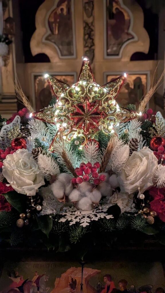 Примерно в 11:00 по завершении богослужения к иконе праздника расположенной в центре храма вынесут свечу, которая символизирует Вифлеемскую звезду. Священники и все прихожане обратятся к Богу с пением тропаря и кондака Рождества.